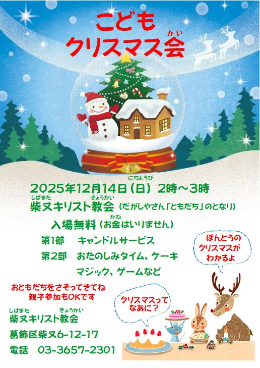 柴又キリスト教会では、教会学校にて毎年クリスマス会を行っています。